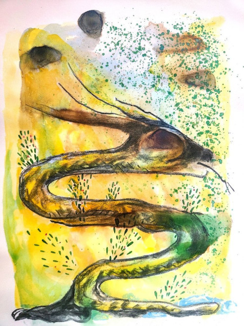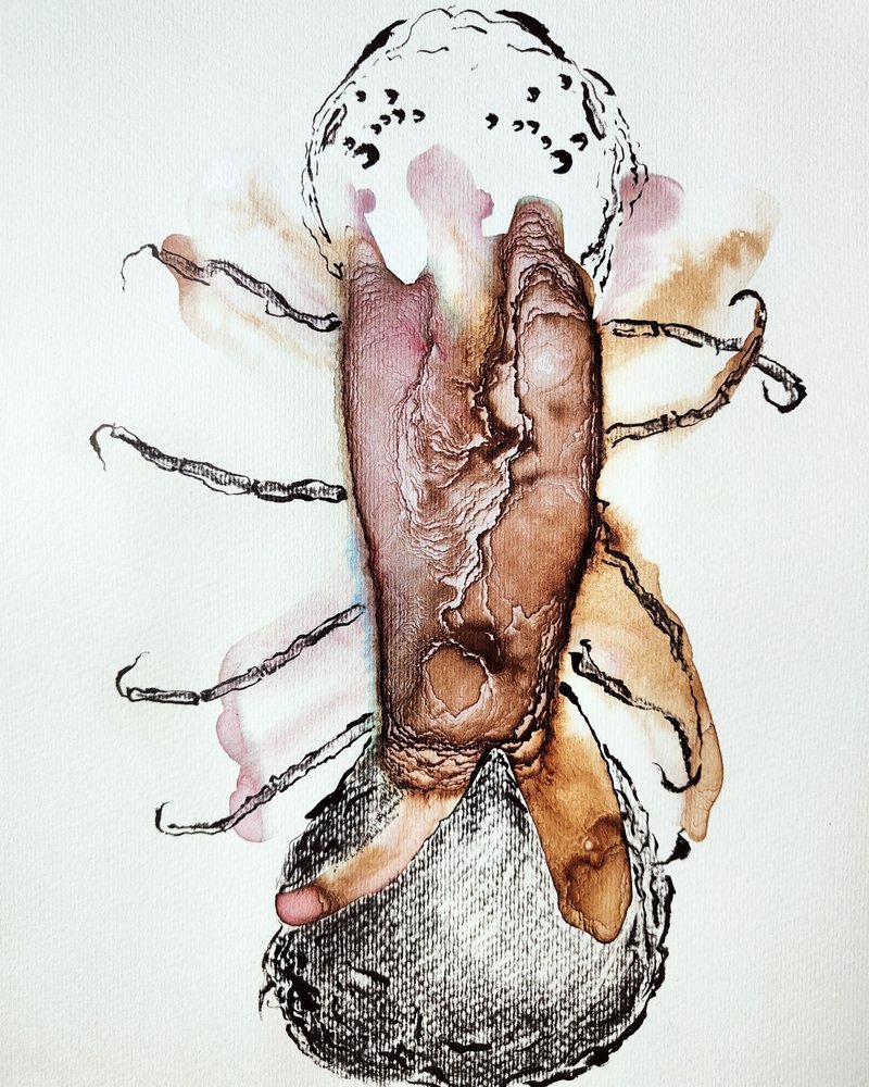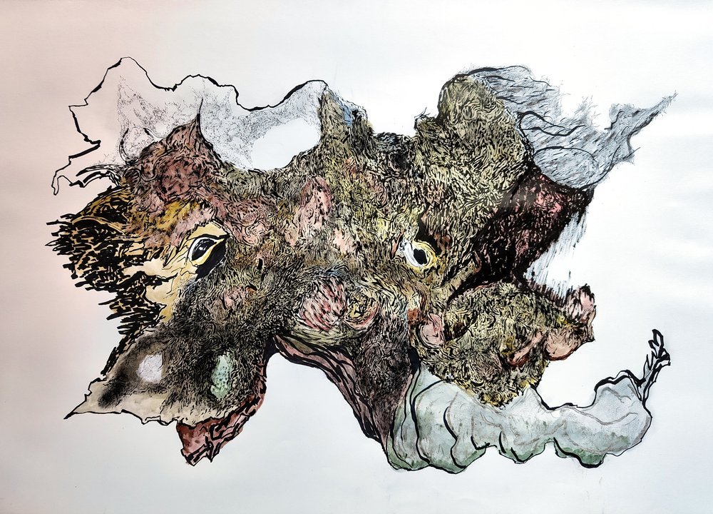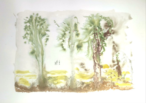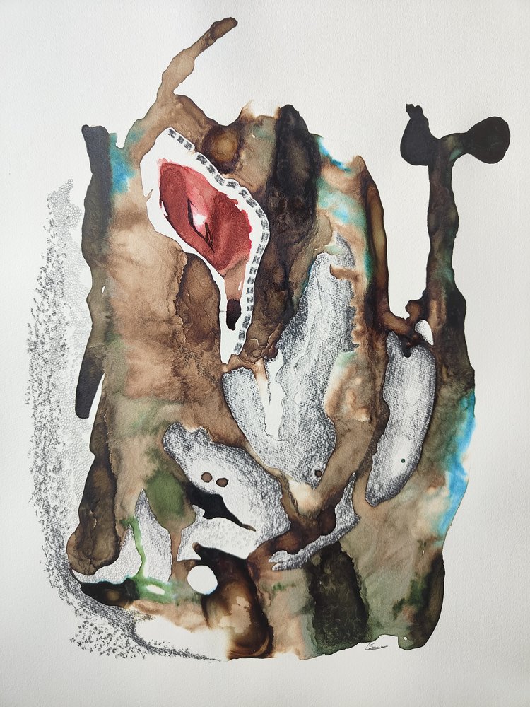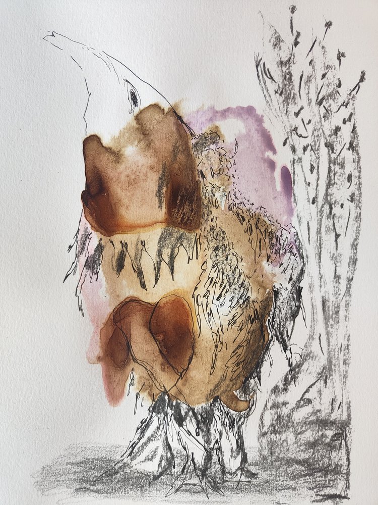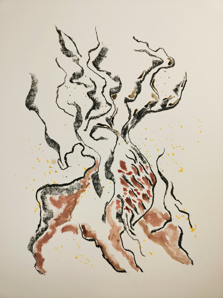 Dessiner l’intérieur, encres et fusains.